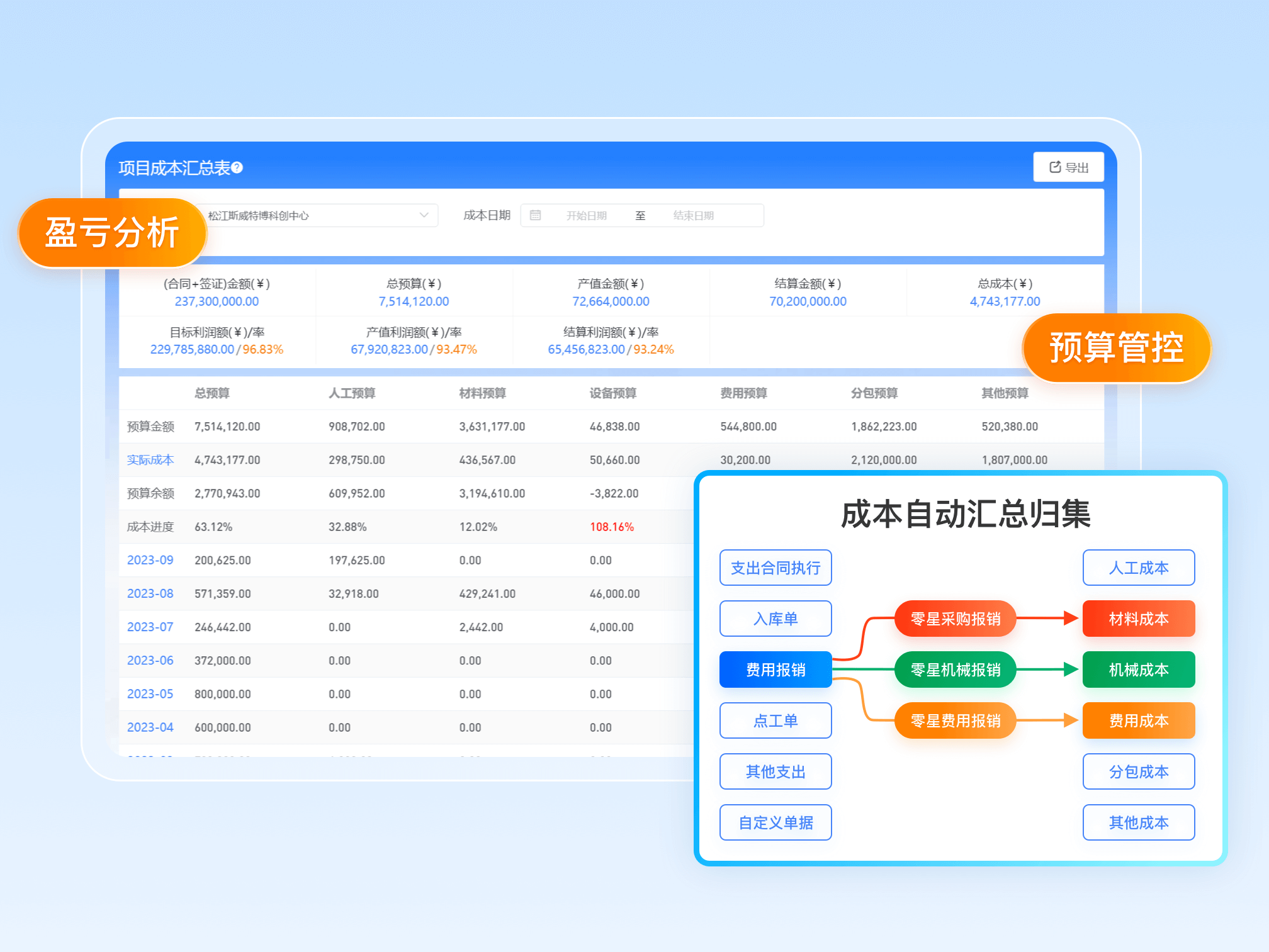 使用前: 项目立项签约前需做成本预算,但小企业缺乏专业能力支撑,多依赖管理者经验估算利润空间,凭感觉判断施工队伍适配性,项目竣工后实际利润率始终模糊不清。 | 使用斗栱云后: 借助斗栱云,项目签约即同步编制预算,可参考过往数据,涵盖人工费、材料用量及总支出。系统自动核算无需手工统计,项目核算人员从5人精简至2人,实现项目管理人员精简20%,劳务成本降低 10%,整体工程利润提升5%。 |