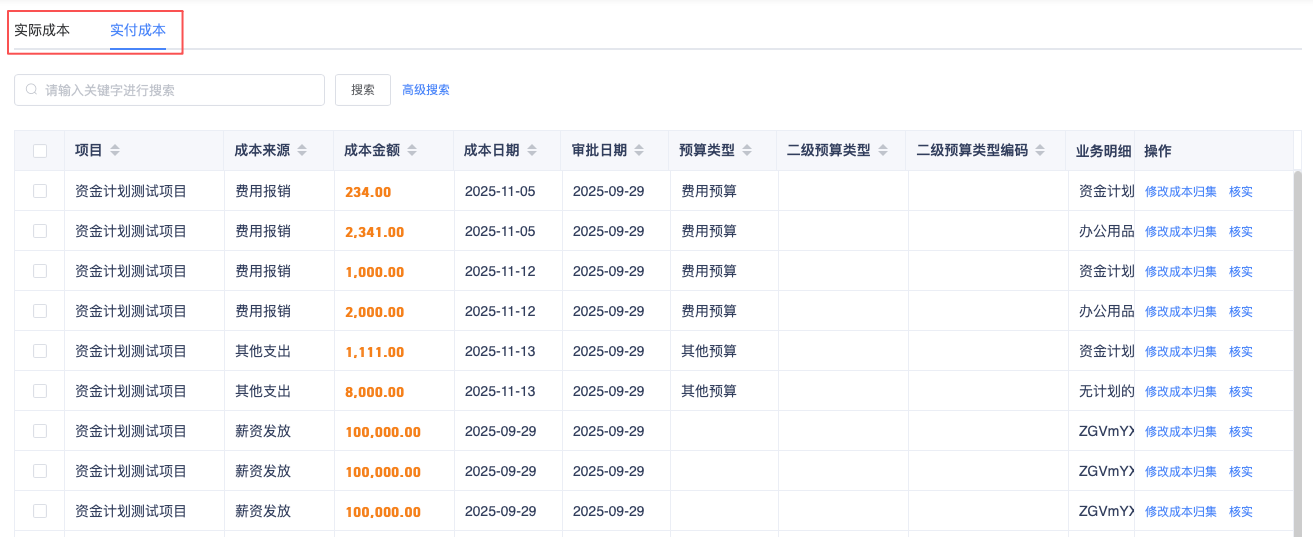 5.【成本中心/项目成本明细表】新增实付成本维度