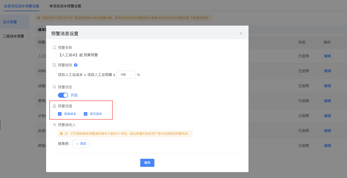 预警范围支持【实际成本、实付成本】,此前默认实际成本,支持同时设置;