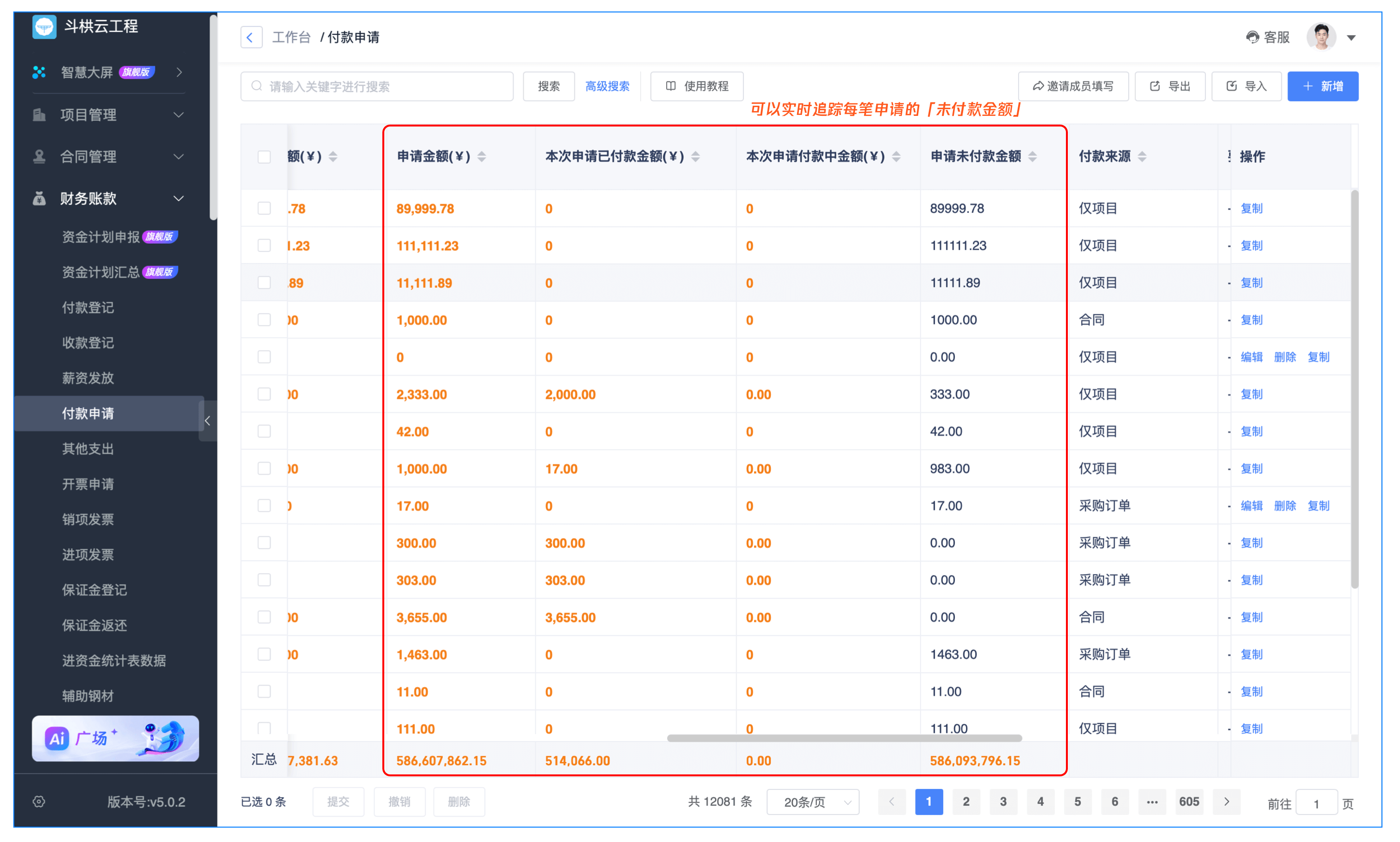 1、实现场景:【实时看到对应「付款申请-未付款金额」】需求